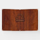 A Libra Zodiac symbol on a rich brown mahogany wood grain style design texture print background. A modern classy racy design for a great custom birthday gift idea.
