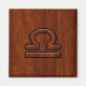 A Libra Zodiac symbol on a rich brown mahogany wood grain style design texture print background. A modern classy design for a great custom birthday gift idea.
