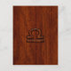 A Libra Zodiac symbol on a rich brown mahogany wood grain style design texture print background. A modern classy racy design for a great custom birthday gift idea.