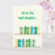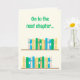 This greeting card features a row of books and the phrase "On to the next chapter..." written in green in a fun font. Customise the inside text, or delete to leave blank. Great for English teachers, elementary school teachers, principals, etc.