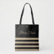 Keep up with your library books with this dedicated tote bag in fashionable black and tan stripes. Optional monogram.