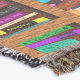 A quality printed throw has its advantages. This is a much finer weave throw than its loopier cousins, and though lighter, it is worth the investment for custom room accessorizing. The back is much prettier than the typical brown, and the fringe on the long sides very vivid, the selvage nicely done. Before photographing, I washed the throw in cold water, delicate, with a thicker woven throw the same size. On tumble dry low, this throw was dry in half the time as the other. This is a very practical quality if you use throws for furniture covers or to wrap up in frequently. The sleekness of the fabric makes it a great layer for accenting or protecting without the feeling of sitting on too much stuff. Perfect for napping or when you feel a light chill coming on. The color printing is beautiful and on this fabric, matched the design and color of my Photoshop image. This is an advantage for blending room fabrics and colors. The fringe on the short sides prints the colors from the design image and therefore varies from the side fringe. I streaked a white fractal line through the plaid pattern to give the illusion of weaving. This printed as crisp as an illusory thread, and put some white in the short side fringe, showing another advantage of print vs loomed- for artistic purposes, line lines, detail, and color integrity can be planned and preserved. My loomed throws have color limitations and more of a needlepoint texture. Print throws reproduce an exact image. The throw felt a little stiff straight out of the package, but this went away in the first delicate wash. Of course I searched the wash water for ink or bleeding and there was none.