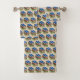 Bath towel set features an original marker illustration of a stack of library books on a tan background.