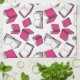 Library Books Fun Librarian Bookworm Pink and White Tea Towel. Cute pink patterned tea towel featuring illustrations of books in pink and white. Lovey gift idea for librarians and avid book readers alike.