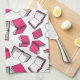 Library Books Fun Librarian Bookworm Pink White Tea Towel