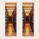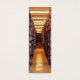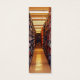This bookmark takes you on a walk down a long aisle of books in the stacks of a huge library. The bright lighting reveals book spines in a kaleidoscope of colours: red, green, blue, black, white, gold, brown, purple. The symmetrical angle creates a geometric abstract design that seems to lead to infinity. The reflections on the freshly waxed floor contribute to the overall pattern. The image is repeated on the reverse side.