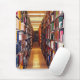 This mousepad takes you on a walk down a long aisle of books in the stacks of a huge library. The bright lighting reveals book spines in a kaleidoscope of colours: red, green, blue, black, white, gold, brown, purple. The symmetrical angle creates a geometric design that seems to lead to infinity. The reflections on the freshly waxed floor contribute to the overall pattern.