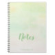 Libreta de espiral con diseño de acuarela en tonos suaves de verde y amarillo personalizable.