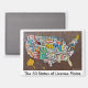 Hand-crafted out of genuine, used American license plates, this magnet features "The 50 States of License Plates," a monumental artwork and classic piece of Americana that represents the finished product of social media creator Ethan the License Plate Guy's long-running License Plate Map series on Instagram, TikTok and YouTube.