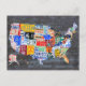 License Plate Map of the USA on Grey Wood Planks Postcard