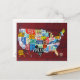 License Plate Map of the USA Postcard on rich red. Google 'design turnpike' to see more artwork!