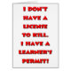 A funny text that's sure to put a smile on everyone’s face. The text says: I don't have a license to kill. I have a learner's permit!