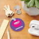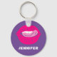 Create a fun personalised keychain that's perfect for that kissable special someone. It features an illustration of bright magenta coloured lips with a pink tongue licking them set against a purple background. Your name or other message appears below.