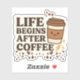 Celebrate your love for coffee with this charming and playful design. Featuring warm tones, happy coffee vibes, and a dash of humour, it’s ideal for anyone whose day truly starts after their first sip. A great choice for coffee enthusiasts, baristas, and caffeine fans everywhere.