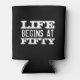 Life begins at 50 funny 50th Birthday can cooler for beer or soda drinks. Fun quote beverage holder for fifty year old men and women. Change age year accordingly. Faded vintage typography design with custom age. Add your own custom number. Cool surprise Birthday party gift idea for legendary dad, father, husband, world's greatest uncle, grandpa, best brother, grandfather, stepfather, pensioner, stepdad, retired man, boss, co worker, traveller, mum, wife, sister, aunt, grandma, couple, newly weds, etc. Black and white design with distressed look letters. Age specific humour / Over the hill joke for fifty year old guys and ladies. Grungy template for fiftieth Birthday celebration. Grunge style lettering. Customisable with your own humourous saying or slogan ideas. Personalizable number for 30th 40th 60th 70th 80th Bday!