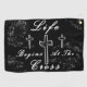 A wonderful worship message with a silhouette of three crosses to remind Christians that eternal life begins at the cross of Christ.