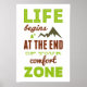 Life begins at the end of your comfort zone. The design: Vintage Typography style lettering in green & brown. This poster is perfect for present.