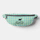 Fun farmhouse themed fanny pack features goat silhouette with "life is better with a goat" text in modern script on blue country gingham plaid background