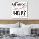 A touch of fun to display on your wall with this humourous quote Life Happens Chocolate Helps in black and chocolate brown typography with a heart motif and simple square shapes.