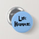 "Life Happens" pin button. Background color can be customised.