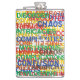 Well made flask, a little better than I had expected. Flask came in clear plastic box which gave it a nice presentation when I took it out of the zazzle packaging. Image is not printed on flask but on sticker. Don't know how this will hold up I haven't used it yet. This would make a Great gift! I plan to purchase more for friends! Cheers. I thought a little brighter than computer. Very crisp, writing wasn't