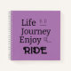 "Life is a Journey Enjoy the Ride" is an inspirational phrase to motivate you while planning your dreams. Perfect gift for friend or loved one. Black lettering on lilac background. Lilac colour on both back and front covers. Hard or soft covers available.