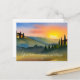 Beautiful postcard features an inspiring Rumi quote on watercolor landscape background depicting the rolling hills of Tuscany at Sunset.