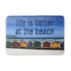 Beautiful contemporary photograph of beach cabins at the ocean shore. Ornate, whimsical and funky design available on a variety of fun, classy and fashionable bathroom décor accents and beach essentials.