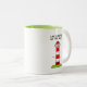 Life is better at the beach cute lighthouse Two-Tone Coffee Mug. Red and white light house tower with sea birds drawing. Coastal scene design cup for home or office. Personalise with your own name or quote optionally. Fun Birthday gift idea for friends, family, sailor, boat captain etc.