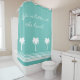 Life is better at the beach shower curtains. Beach theme home decor with custom quote, saying or monogram. Stylish script typography template. Cute bathroom accessories for seaside home. Palm tree house decorations. Coastal scene with ocean sea stripes. Turquoise blue and white or customisable colour.