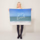 This fleece blanket features a serene photo of water and white sand. White text on top of the photo reads: Life is better at the Beach.
