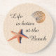 Sand background with seashells sandstone coaster Life is better at the beach. Available in different shapes.