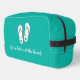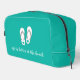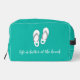 Life is better at the beach turquoise blue custom Dopp Kit. Cool brush script typography print for humourous quote and cute turquoise blue heart flip flops. Unique toiletry bag travel gift ideas for him or her. Elegant hand lettering calligraphy with pretty swirly letters. Personalise with his or her name at the bottom under the beach slippers / sandals logo.