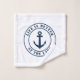 Life is better at the lake navy and white custom Bath Towel Set. Make your own towel set for lake house, sailing, boating, yachting, pontoon, summer, swimming pool, fishing and more. Elegant housewarming present for new home owner, sailor family, skipper, friends, retiree, pensioner, family, retired husband, wife, boss, colleague, boat owner, pontoon owner, traveller, retired co worker, retiring person, boat captain, coach, grandpa, grandma, kids etc. Customisable in different colours. Navy blue and white colour combination with stripes and ship anchor logo. Bold typography template. Includes wash cloth, hand towel and big bathroom towel. Great for vacation home or beach house.