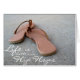 Greeting card featuring a photo of tan leather flip flop sandals. Life is better in flip flops! Copyright ©Magnum Creative Group. All rights reserved.