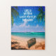 Get whisked away to paradise with this colourful jigsaw puzzle. This product features an image of a tropical beach with gorgeous brown sand, cool palm trees, relaxing blue ocean waves, and a beautifully painted canoe sitting on the shore.