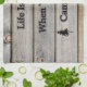 Life is better when you are camping is a design created by Debbie Quick of Debs Creative Images. This design was created from a photo Debbie took of a side of a barn and then added text over it.