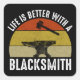 Life Is Better With A Blacksmith. This vintage funny quote accessory is a great blacksmith gift for anyone who's a blacksmith & loves forging & metalworking. If you like to forge in fire in your garage or shed, and you're a blacksmith, metalworker, farrier or knifemaker, & love working with forged metal, then this design is for you! Features a distressed graphic of a hammer and anvil.