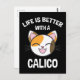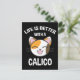 Life Is Better With A Calico. This cute & funny calico cat lover accessory is a perfect gift for a cat mum or cat dad who's a calico cat owner. Great for men, women, boys, girls, teens & kids who love calico cats. If you're the proud owner of a pet calico kitty and you love calico cats & kittens, this design is for you! Includes a cute cartoon graphic of an adorable orange, brown & white calico cat face.