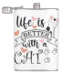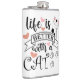 Well made flask, a little better than I had expected. Flask came in clear plastic box which gave it a nice presentation when I took it out of the zazzle packaging. Image is not printed on flask but on sticker. Don't know how this will hold up I haven't used it yet. This would make a Great gift! I plan to purchase more for friends! Cheers. I thought a little brighter than computer. Very crisp, writing wasn't