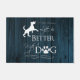 The Life is better with a Dog Door Mat is perfect for those who find life much better with a dog in it. Door mat design features text that says "Life is better with a Dog." with a paw print and dog silhouette embellishment against a deep blue rustic wooden background. Additional gift items available with this design as well.
