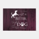 The Life is better with a Dog Door Mat is perfect for those who find life much better with a dog in it. Door mat design features text that says "Life is better with a Dog." with a paw print and dog silhouette embellishment against a deep magenta rustic wooden background. Additional gift items available with this design as well.