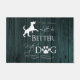 The Life is better with a Dog Door Mat is perfect for those who find life much better with a dog in it. Door mat design features text that says "Life is better with a Dog." with a paw print and dog silhouette embellishment against a deep teal rustic wooden background. Additional gift items available with this design as well.