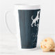 Perfect mug for those who love lattes and finds life much better when there is a dog in it. The Life is better with a Dog Latte Mug design features text that says "Life is better with a Dog." with a paw print and dog silhouette embellishment against a deep blue rustic wooden background. Additional gift items available with this design as well.
