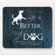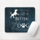 Add a funny touch to your home office or workspace with a Life is better with a Dog Mouse Pad. Mouse pad design features a deep blue rustic wooden background with the saying "Life is better with a Dog" with a paw print and canine silhouette embellishments. Additional gift items available with this design as well.