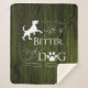 Cosy up with this Green "Life Is Better with a Dog" Sherpa Blanket, a heartfelt addition to dog lover home accents for those who believe life is better with dogs. This luxurious blanket features the charming phrase "Life is better with a dog" in a stylish blend of elegant script and modern typography, accented by a dog silhouette, paw print, and fancy flourish. Crafted from ultra-soft sherpa fabric, its warm design brings canine-inspired comfort and charm to any living space, perfect for snuggling during cosy evenings.