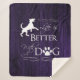 Cosy up with this Purple "Life Is Better with a Dog" Sherpa Blanket, a heartfelt addition to dog lover home accents for those who believe life is better with dogs. This luxurious blanket features the charming phrase "Life is better with a dog" in a stylish blend of elegant script and modern typography, accented by a dog silhouette, paw print, and fancy flourish. Crafted from ultra-soft sherpa fabric, its warm design brings canine-inspired comfort and charm to any living space, perfect for snuggling during cosy evenings.