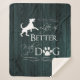 Cosy up with this Teal "Life Is Better with a Dog" Sherpa Blanket, a heartfelt addition to dog lover home accents for those who believe life is better with dogs. This luxurious blanket features the charming phrase "Life is better with a dog" in a stylish blend of elegant script and modern typography, accented by a dog silhouette, paw print, and fancy flourish. Crafted from ultra-soft sherpa fabric, its warm design brings canine-inspired comfort and charm to any living space, perfect for snuggling during cosy evenings.