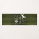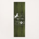 The Life is better with a Dog Yoga Mat features text that says "Life is better with a Dog." with a paw print and dog silhouette embellishment against a deep green rustic wooden background. Additional gift items available with this design as well.