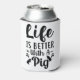 Life is better with a Pig Quote Black and White Can Cooler